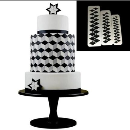 2 Stück Schokoladenkuchen, geometrisches Puzzle, geprägte Streifen, Grundform, Grafik, Keksform, Stanzwerkzeug, Four-sided Diamond, Jigsaw, Hexagon, Square, Regular Triangle, Oblique Triangle