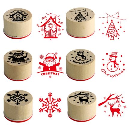 Weihnachts-Schneeflocken-Hirsch-Stempelset aus Holz zum Selbermachen, 6PCS/Set