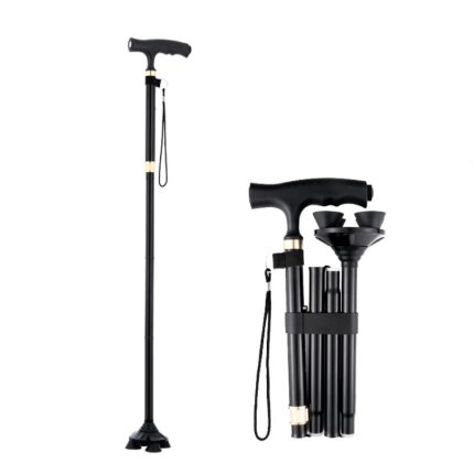 TBS-009 Vierbeinige klappbare ältere Krücken aus Aluminiumlegierung, leichte und multifunktionale rutschfeste Krücken mit Licht, TBS-009(Black), TBS-009(Brown)