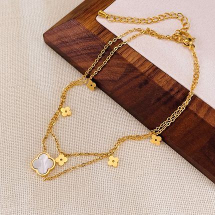 OPK GZ191 Fußkettchen mit Skelett-Blumen-Doppelkette aus Edelstahl
