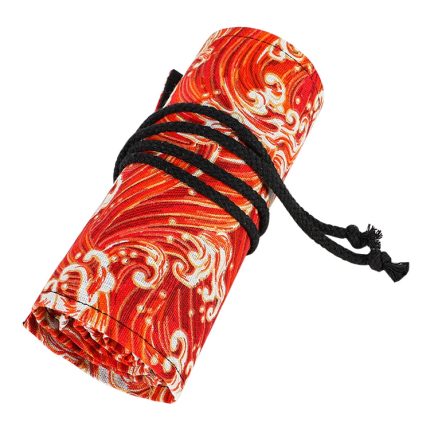 Golden Red Sea Wave Druckroller-Federmäppchen, großes Fassungsvermögen, große Stifttasche aus Segeltuch