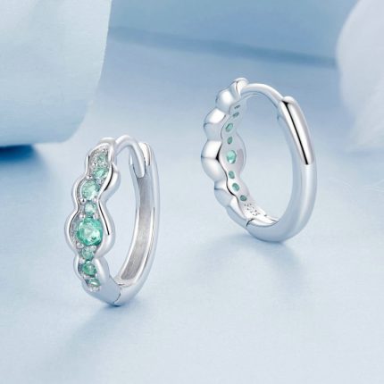 S925 Sterling Silber mit platinierten süßen grünen Ozeanwellen-Ohrringen