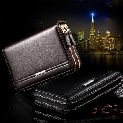 LEINASEN A80 Multi-Card Herren-Handtasche, doppelter Reißverschluss, große Kapazität