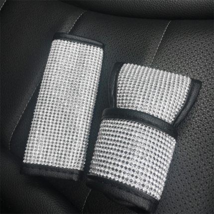 2 Stück mit Diamanten besetzte Auto-Innenraumprodukte, personalisierte Schutzhülle, Shoulder Guard, Handbrake Cover, Gear Cover, Parking Space Pull Cover