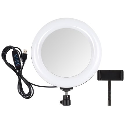 PULUZ 7,9 Zoll 20 cm USB 3 Modi Dimmbar Dual Farbtemperatur LED gebogener Lichtring Vlogging Selfie Fotografie Videoleuchten mit Spiegel, 7.9 inch with mirror