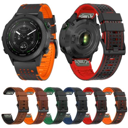 Uhrenarmband aus Silikonleder mit Punktloch und Schnellverschluss, For Garmin Fenix 7X 26mm, For Garmin Fenix 7 22mm