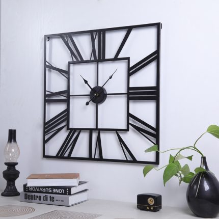 2053 58 cm Vintage Wohnzimmer Schmiedeeisen quadratische römische Metallwanduhr, Black+Gold Needle, Black+Black Needle, Gold+Gold Needle
