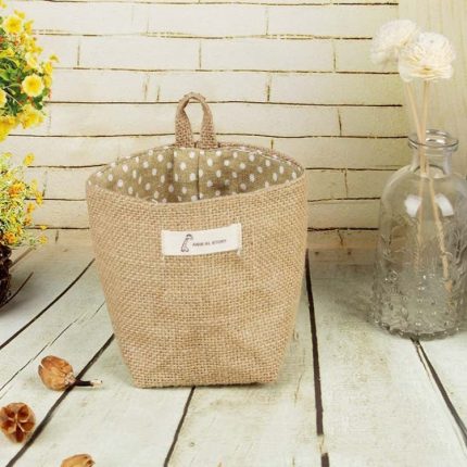 5 Stück Baumwoll- und Leinenstoff-Kunst-Blumentopf, kleiner Sack, hängender Aufbewahrungskorb, Dots, Stripes