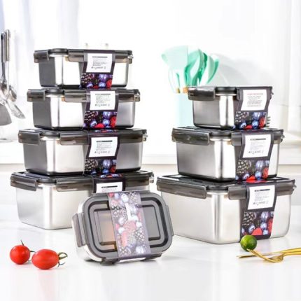 Kühlschrank, gekühlte Lagerung, luftdichter Crisper aus Edelstahl, Fassungsvermögen:, Rectangular 600ML, Rectangular 1000ML, Rectangular 1400ML, Rectangular 2000ML, Rectangular 2800ML, Square 750ML, Square 1500ML, Square 2800ML, Rectangular 3 PCS/Set…