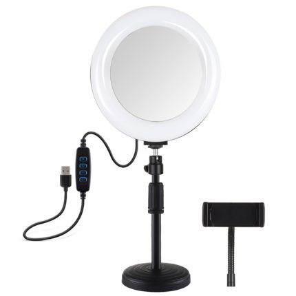 PULUZ 7,9 Zoll 20 cm Spiegelleuchte + runder Sockel, Tischmontage, 3 Modi, dimmbar, Dual-Farbtemperatur, gebogener LED-Lichtring, Vlogging, Selfie, Fotografie, Videoleuchten mit Telefonklemme, 7.9 inch+Desktop Mount+Mirror
