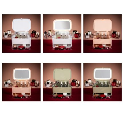 Kosmetische Aufbewahrungsbox Staubdichte Hautpflegeprodukte Desktop-LED mit Spiegelregal, White Small Ordinary Model, White Small LED Light Model, Pink Small Ordinary Model, Pink Small LED Light Model, Green Small Ordinary Model…