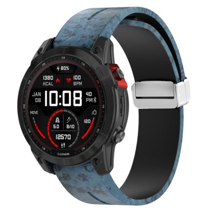 Magnetisches, faltbares Uhrenarmband aus Silikon mit silberner Schnalle und farbigem Aufdruck, For Garmin Fenix 7X, For Garmin Fenix 7, For Garmin Fenix 7S