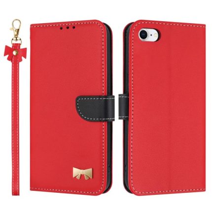 Metal Bow Leather Phone Case with Hand Strap, For iPhone 7 / 8 / SE 2022, For iPhone 13 Pro Max, For iPhone 13 Pro, For iPhone 12 / 12 Pro