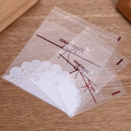 Selbstklebende Keksbeutel mit weißer Spitze und Schleife, Backverpackung, 100pcs /Pack 7x7cm, 100pcs /Pack 10x10cm, 100pcs /Pack 15x15cm