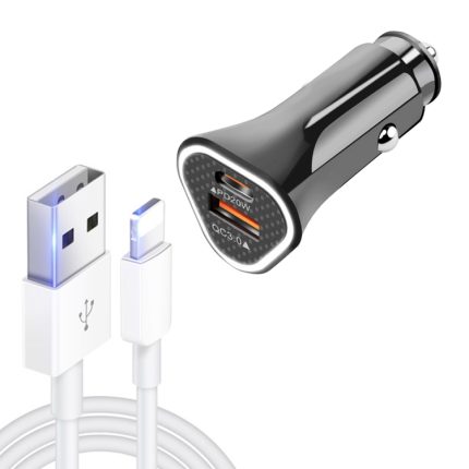 TE-P23 38W PD 20W USB-C / Typ-C + QC3.0 USB-Dreieck-Autoladegerät + USB-auf-8-Pin-Datenkabel, Länge: 1 m, with 8 Pin Cable