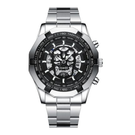 BINBOND S034 30M wasserdichte Quarzuhr Totenkopf Skelett leuchtende Uhr