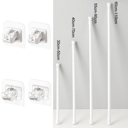 Backfarbe No Punch Curtain Teleskopstangenhaken Stützhalterung, 30cm-50cm, 40cm-70cm, 55cm-90cm, 60cm-110cm, White Hook 2pcs/set, Transparent Hook 2pcs/set