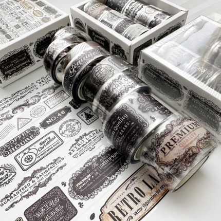 8 Rollen/Box, transparentes PET-Klebeband-Set im antiken Stil für Journaling, 3 cm x 2 + 2 cm x 2 + 1,5 cm x 4