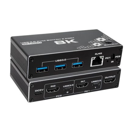 K1 2 Ports HDCP 2.3 RJ45 USB 3.0 Hubs Adapter 4K 120Hz HDMI 2.0b USB-C KVM Switch, K1