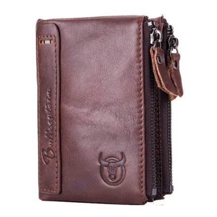 BULL CAPTAIN QB06 Retro First-Layer-Rindsleder-Anti-Diebstahl-Reißverschluss-Geldbörse, kurze Führerschein-Münzklammer