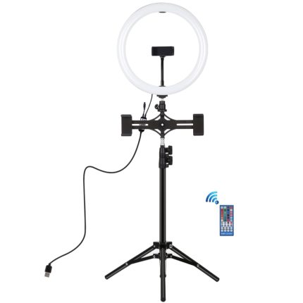 PULUZ 11,8 Zoll 30 cm RGBW-Licht + 1,1 m Stativhalterung + zwei Telefonhalterungen + RGB-dimmbare LED mit zwei Farbtemperaturen und gebogener Oberfläche, LED-Ring, Selfie-Vlogging-Videoleuchte, Live-Broadcast-Kits mit Kaltschuh-Stativ-Kugelkopf, Telefo…