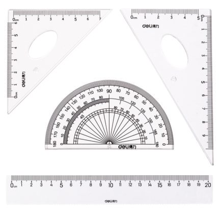 Deli 4-in-1-Lineal-Set für Studenten, Lineal-Briefpapier-Set, 79529, 9597, 9594