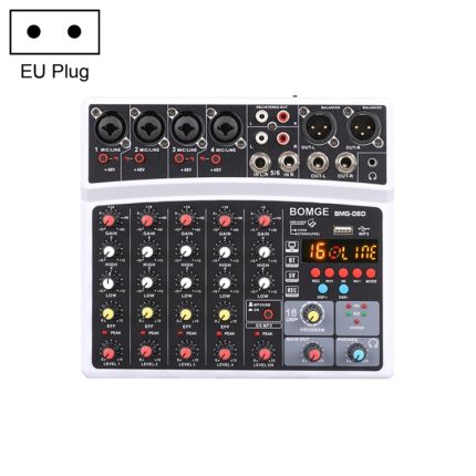 BMG-06D 6-Kanal-Live-Mixer, Mobiltelefon, Bluetooth-Soundkarte, digitaler 16DSP-Reverb-Effekt, EU-Stecker, BMG-06D EU Plug (Black), BMG-06D EU Plug (White)