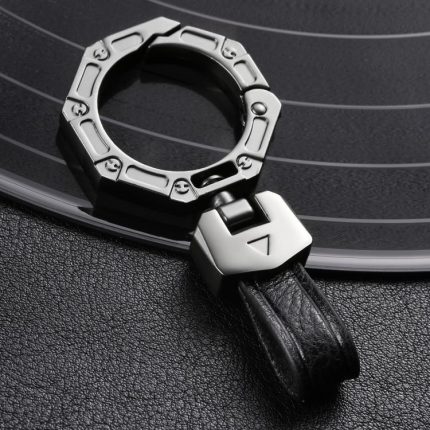 Hallmo Business Schlüsselanhänger aus Zinklegierung, Rindsleder, Anti-Verlust-Anhänger