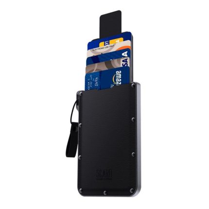 Tragbarer, ultradünner Kartenhalter mit ausziehbarem Design, unsichtbarer, personalisierter Kartenhalter, Brown Microfiber Leather, Black Genuine Leather
