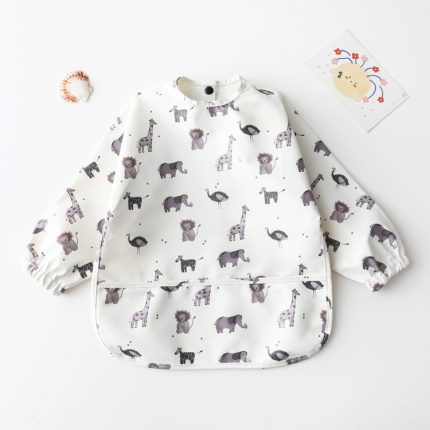 Langärmliges Baby-Lätzchen, wasserdicht, waschbar, leicht zu reinigen, mit Tasche, S, M, L