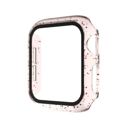 Für Apple Watch Series 5 & 4 44 mm Glitzerpulver PC + Displayfolie aus gehärtetem Glas, integriertes Gehäuse