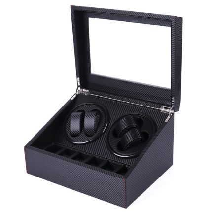 PU-Leder 4+6 Doppelkopf-Motorkasten mit automatischem Aufzug, mechanischer Uhrenrotator, US-Stecker, Full Carbon Fiber, Crocodile Pattern