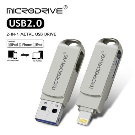 MicroDrive 2-in-1 Lightning + USB 2.0 tragbares USB-Flash-Laufwerk aus Metall, 8GB, 16GB, 32GB, 64GB, 128GB, 256GB, 512GB