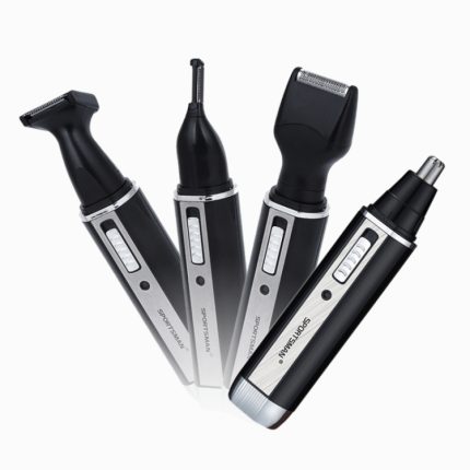 SPORTSMAN 4-in-1 wiederaufladbarer Ohr-Nasen-Trimmer, Elektrorasierer, Bart, Gesicht, Augenbrauen, Haarschneider für Männer, EU-Stecker (schwarz, 220 V), EU Plug