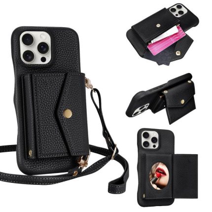 Litchi Texture Horizontal Card Bag Holder Phone Case with Long Lanyard, For iPhone 15 Pro Max, For iPhone 15 Pro, For iPhone 15 Plus, For iPhone 15