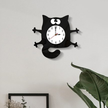 CC040 Kinder Cartoon Ruhige Hängeuhr Home Dekoration Einfache Uhren, Cat