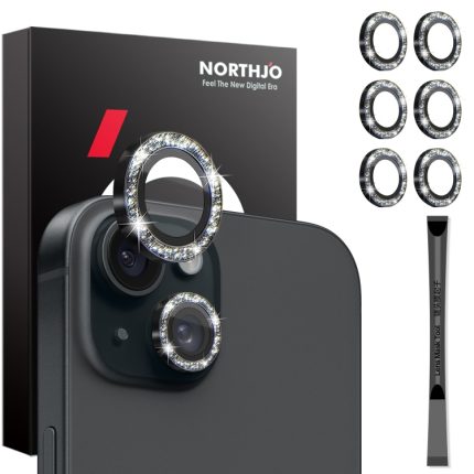 NORTHJO 3er Set 6-teilig Kamera-Objektivschutz Glitzer Metallringfolie, For iPhone 15 / 15 Plus / 14 / 14 Plus