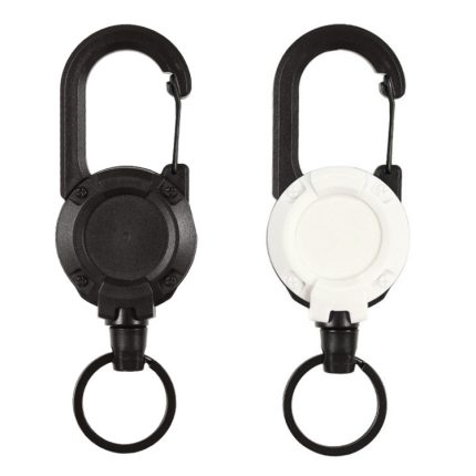 Ausziehbarer Ausweishalter mit Rucksackkarabiner aus Kunststoff, Black-Steel Wire Rope, White-Steel Wire Rope, Black-Fiber Rope, White- Fiber Rope