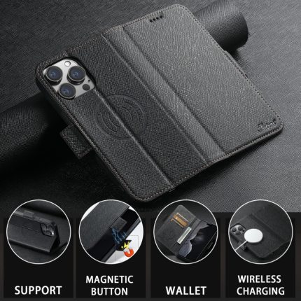 Suteni J08 Multifunktionale MagSafe Leder-Telefonhülle mit Kreuzstruktur, For iPhone 14 Plus, For iPhone 14, For iPhone 14 Pro, For iPhone 14 Pro Max, For iPhone 13 Pro Max, For iPhone 13 Pro, For iPhone 13, For iPhone 12