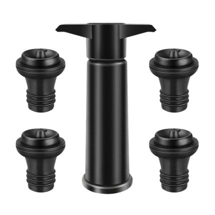Rotwein-Vakuumpumpe-Erfrischer-Silikon-Weinstopfen-Set, Black Pump 4-stopper Box