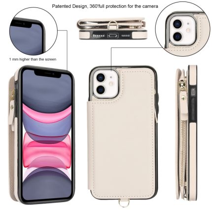 RFID-Telefonhülle aus Leder mit doppeltem Reißverschluss und kurzem Umhängeband, For iPhone 11 Pro Max, For iPhone 11, For iPhone 11 Pro