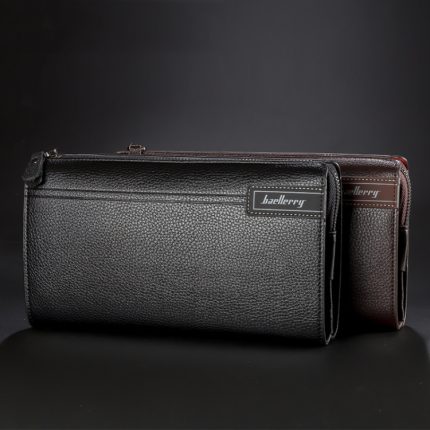Baellerry Herren PU-Leder-Clutch, Business-Casual, Litschi-Muster, Reißverschluss-Geldbörse, Black, Brown