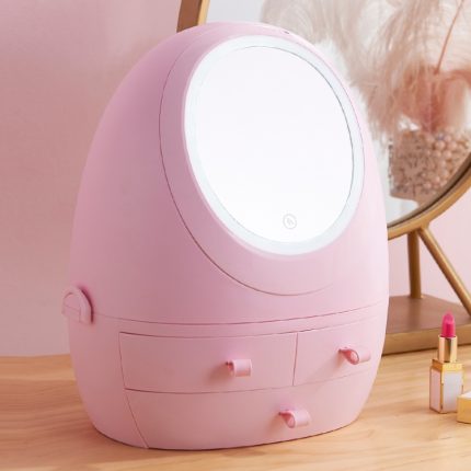 Staubdichte tragbare Kosmetik-Aufbewahrungsbox für den Schreibtisch mit Spiegel, White Single Mirror, White Mirror With Light, Pink Single Mirror, Pink Mirror With Light