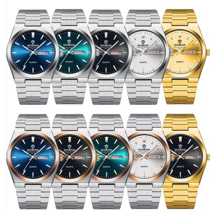BINBOND B102 Freizeit-Quarzuhr mit zwei Kalendern und leuchtender Wasserdichtigkeit, White Steel-Blue, White Steel-Green, White Steel-Black, White Steel-White, Inter-Rose-Gold-Blue, Inter-Rose-Gold-Black, Inter-Rose-Gold-White, Inter-Rose-Gold-Green…