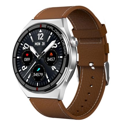 1,3 Zoll Lederband IP68 wasserdichte Smart Watch unterstützt Bluetooth-Anruf, Brown Leather Band, Black Leather Band