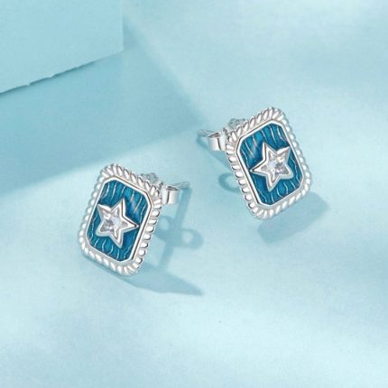 S925 Sterling Silber Platinierte Stern Quadrat Ohrringe