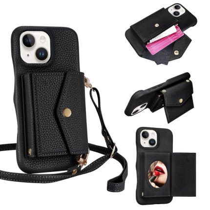 Litchi Texture Horizontal Card Bag Holder Phone Case with Long Lanyard, For iPhone 14 Plus, For iPhone 14 / 13, For iPhone 14 Pro, For iPhone 14 Pro Max