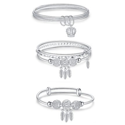 2 Stück geschlossenes Damen-Armband mit drei Ringen, Größe:
