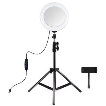 PULUZ 7,9 Zoll 20 cm Spiegelleuchte + 1,1 m Stativhalterung, USB, 3 Modi, dimmbar, Dual-Farbtemperatur, gebogener LED-Lichtring, Vlogging, Selfie, Fotografie, Videoleuchten mit Spiegel und Telefonklemme, 7.9 inch Mirror Light + 1.1m Mount