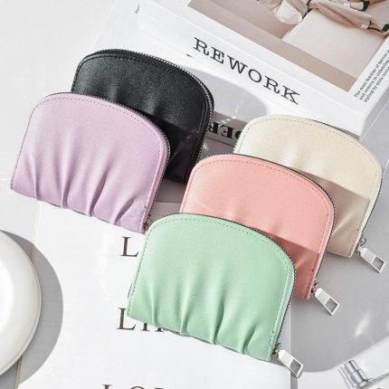 Women Wallet Pleated Sense PU Zipper Short Wallet Simple Solid Color Coin Purse